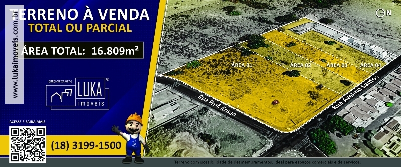 TERRENO COMERCIAL E RESIDENCIAL - Área 16.809m² Em uma área privilegiada de 16.809m², este terreno comercial e residencial destaca-se pela excelente localização e topografia privilegiada, situado de esquina e oferecendo amplo potencial para diversos tipos de empreendimentos, como condomínios verticais ou horizontais, barracões industriais e comércios em geral. O imóvel já conta com infraestrutura completa, incluindo asfalto, guia e calçada, comodidade e valorização imediata. Inserido em uma região estratégica, encontra-se no jardim Barcelona e próximo aos bairros consolidados como​​​​ São Matheus, São Lucas e São Sebastião, além de fácil acesso à Avenida Paulo Marcondes e Jk. Há ainda a possibilidade de desmembramento da área em lotes menores, mediante consulta, ampliando as oportunidades de investimento e adequação a diferentes projetos.